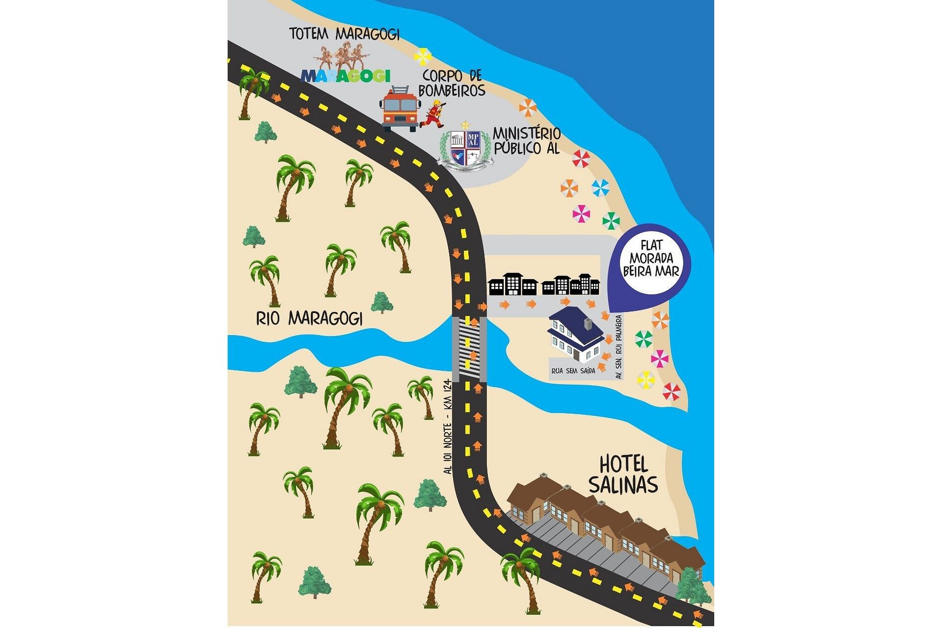 PONTO DE REFERÊNCIA: O Edifício MORADA BEIRA MAR situa-se exatamente entre os hotéis IBIS e o Salinas Resort Maragogi 5 Estrelas, com acesso pela avenida à beira-mar.