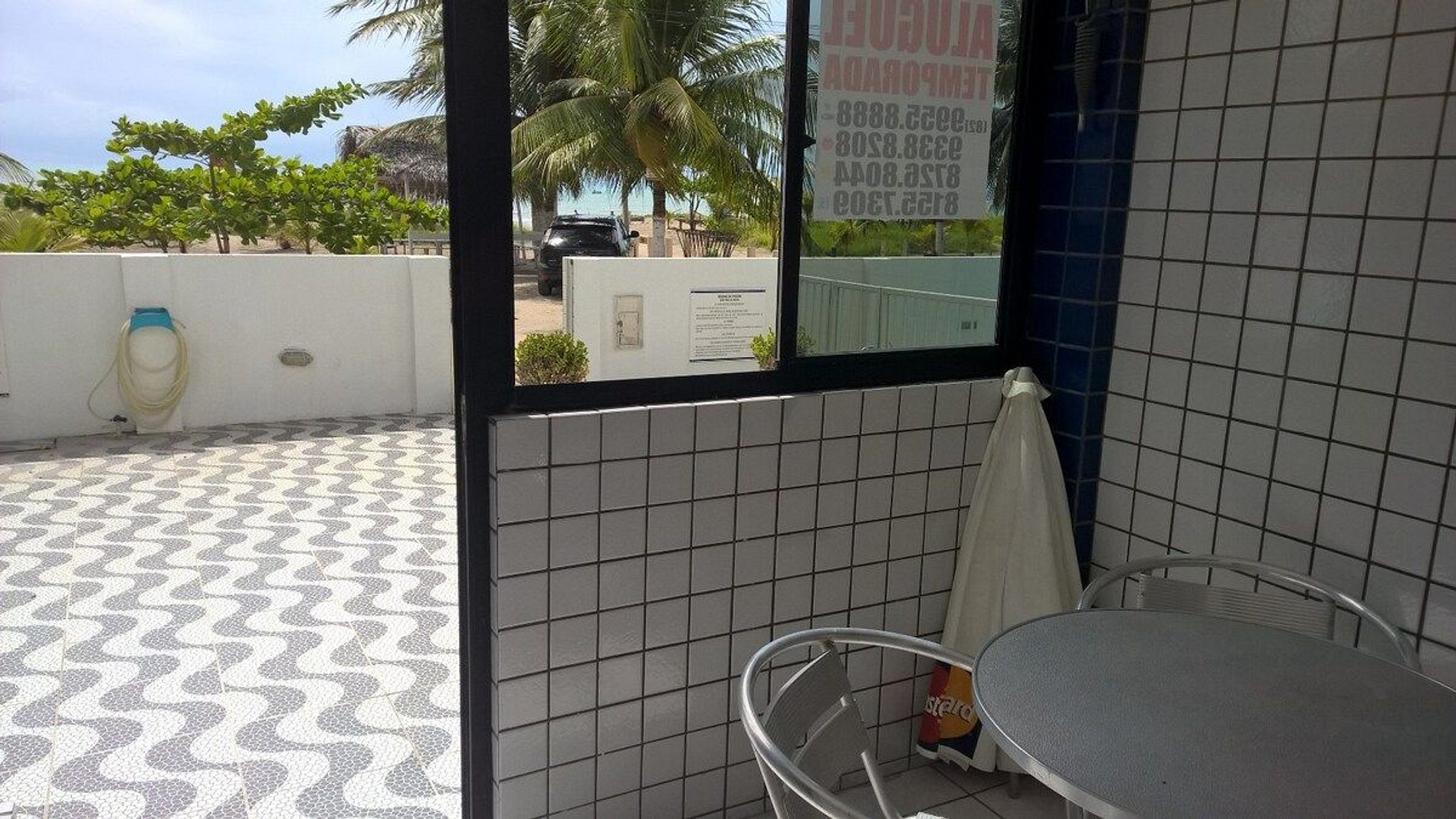 Disponibilizamos ainda duas cadeiras de praia e uma sombrinha em alumínio, com mesinha e cooler.
