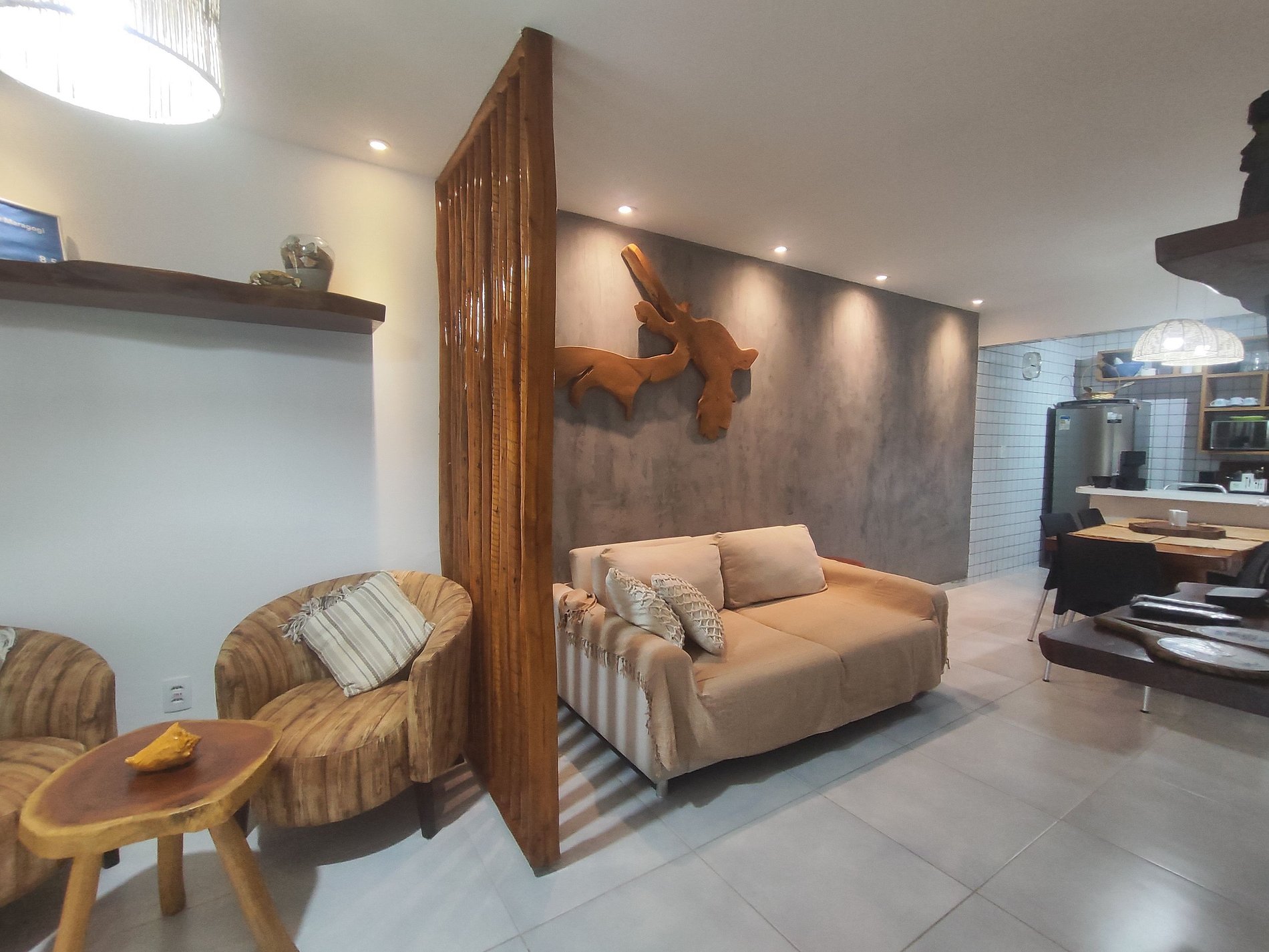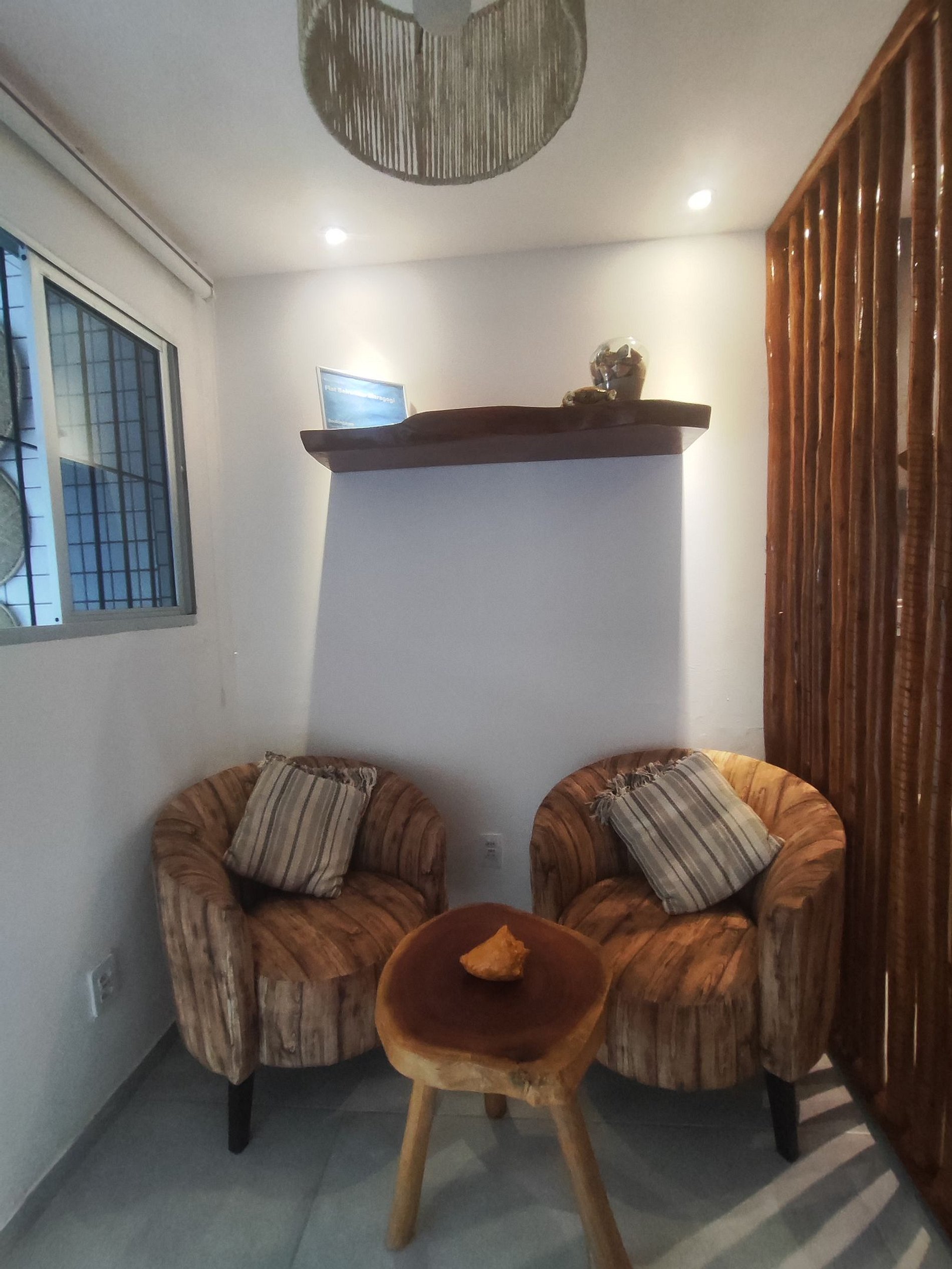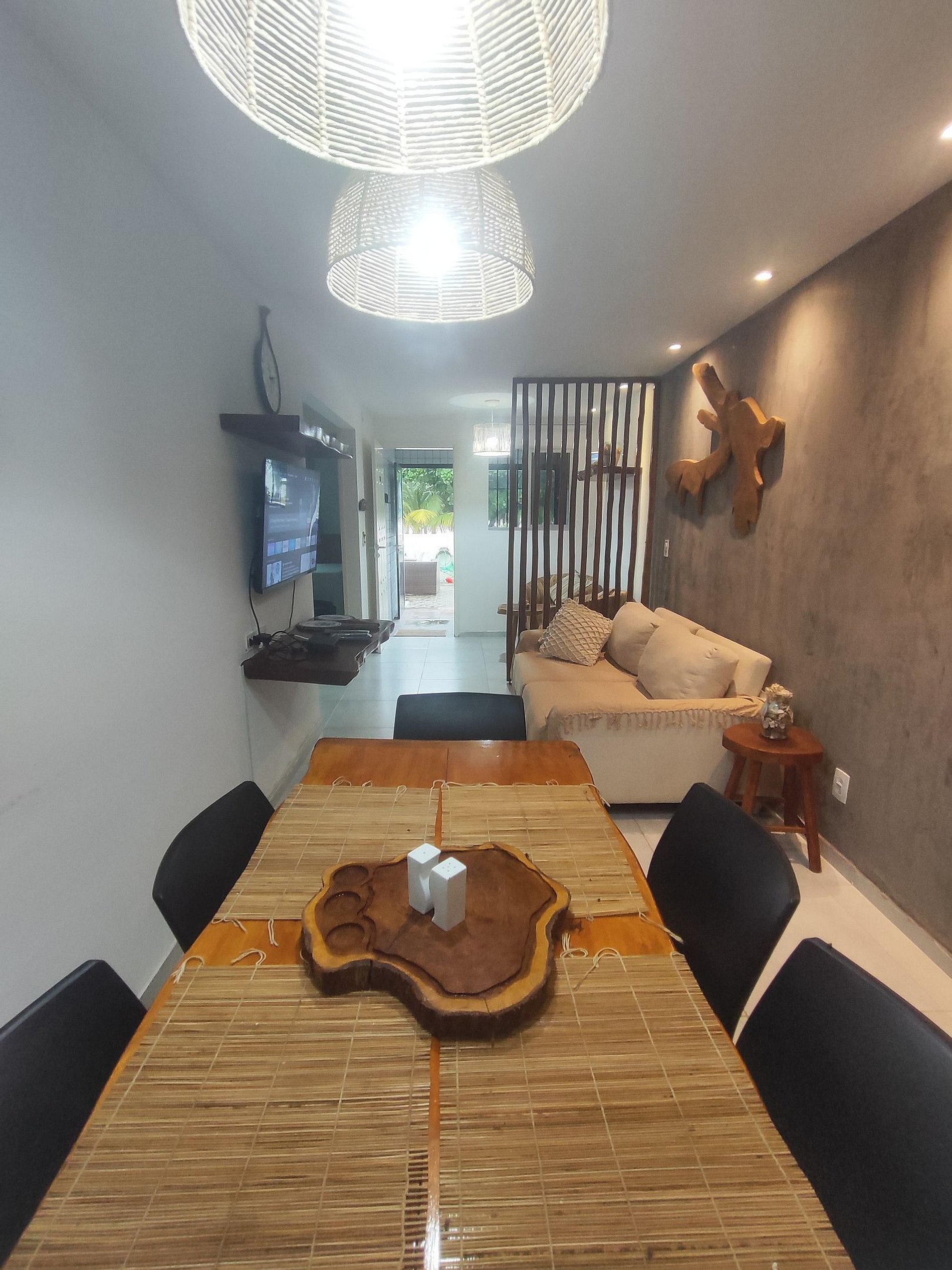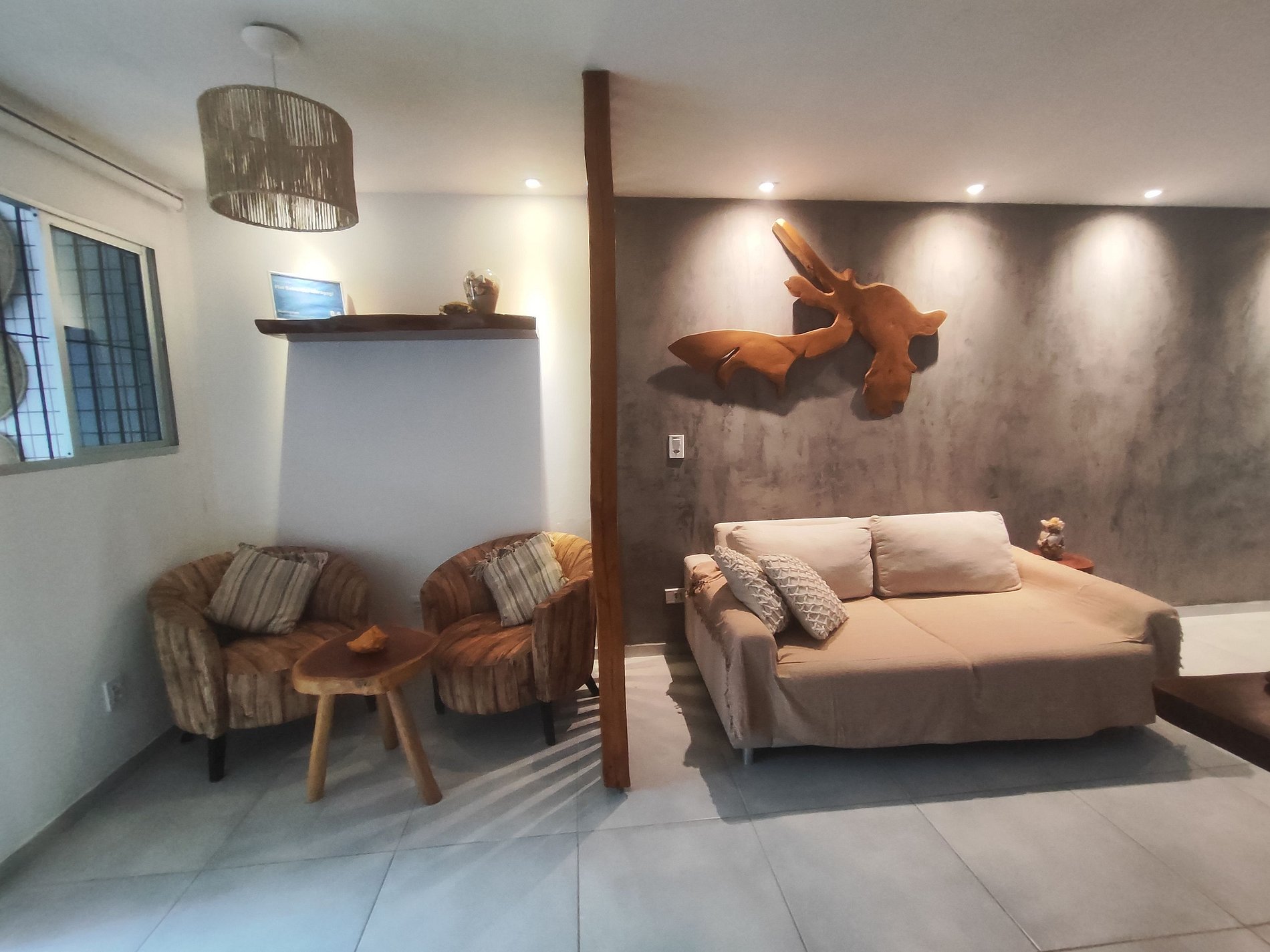 A decoração é rústica, aconchegante e praiana.
