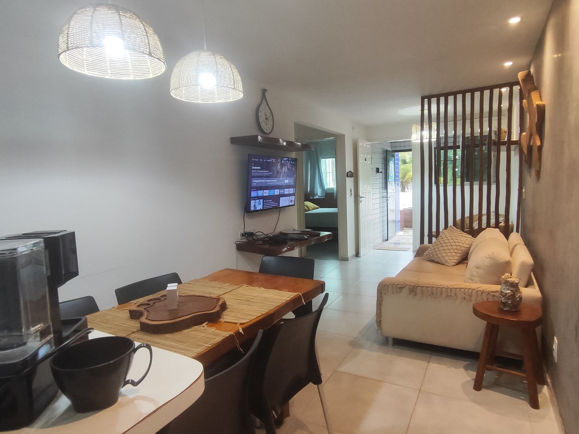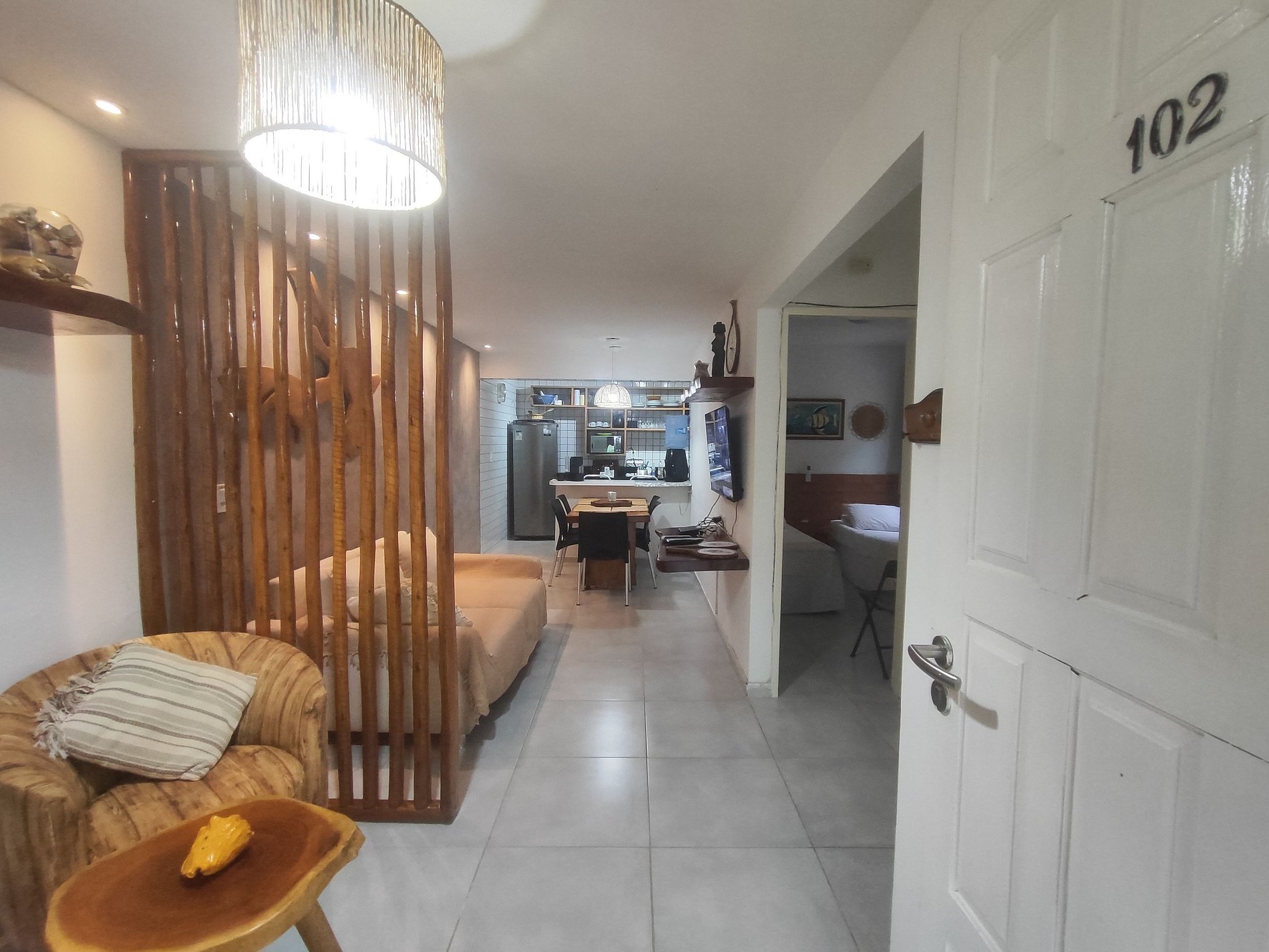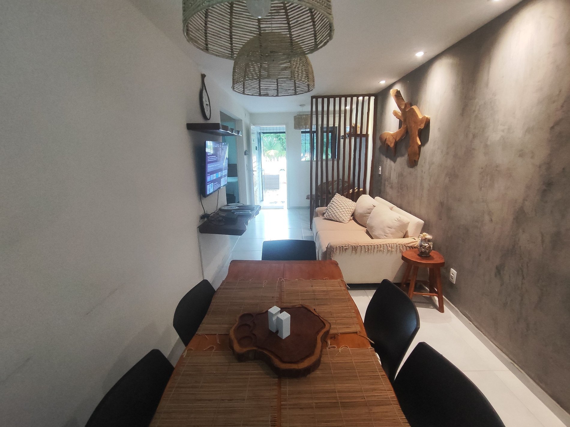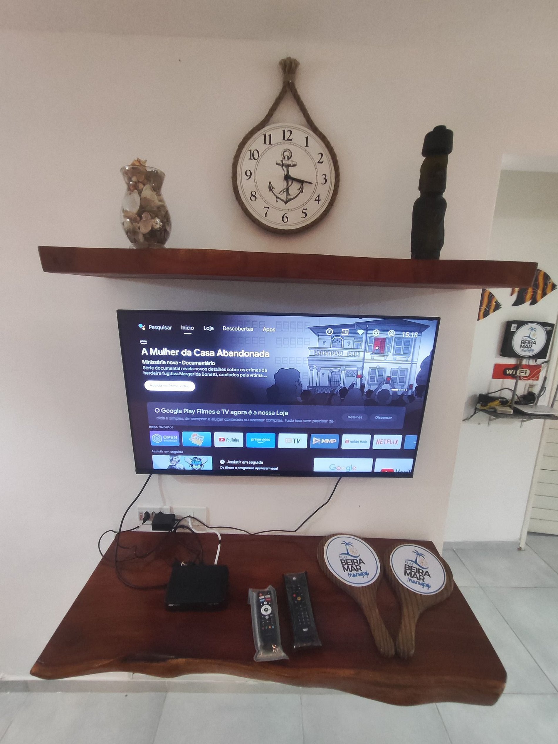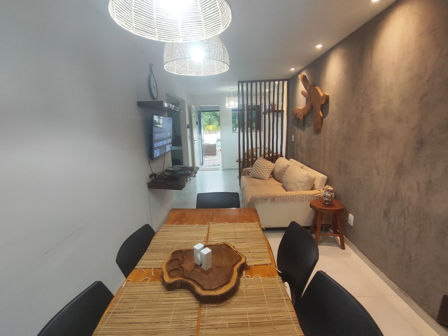 A decoração é rústica, aconchegante e praiana.